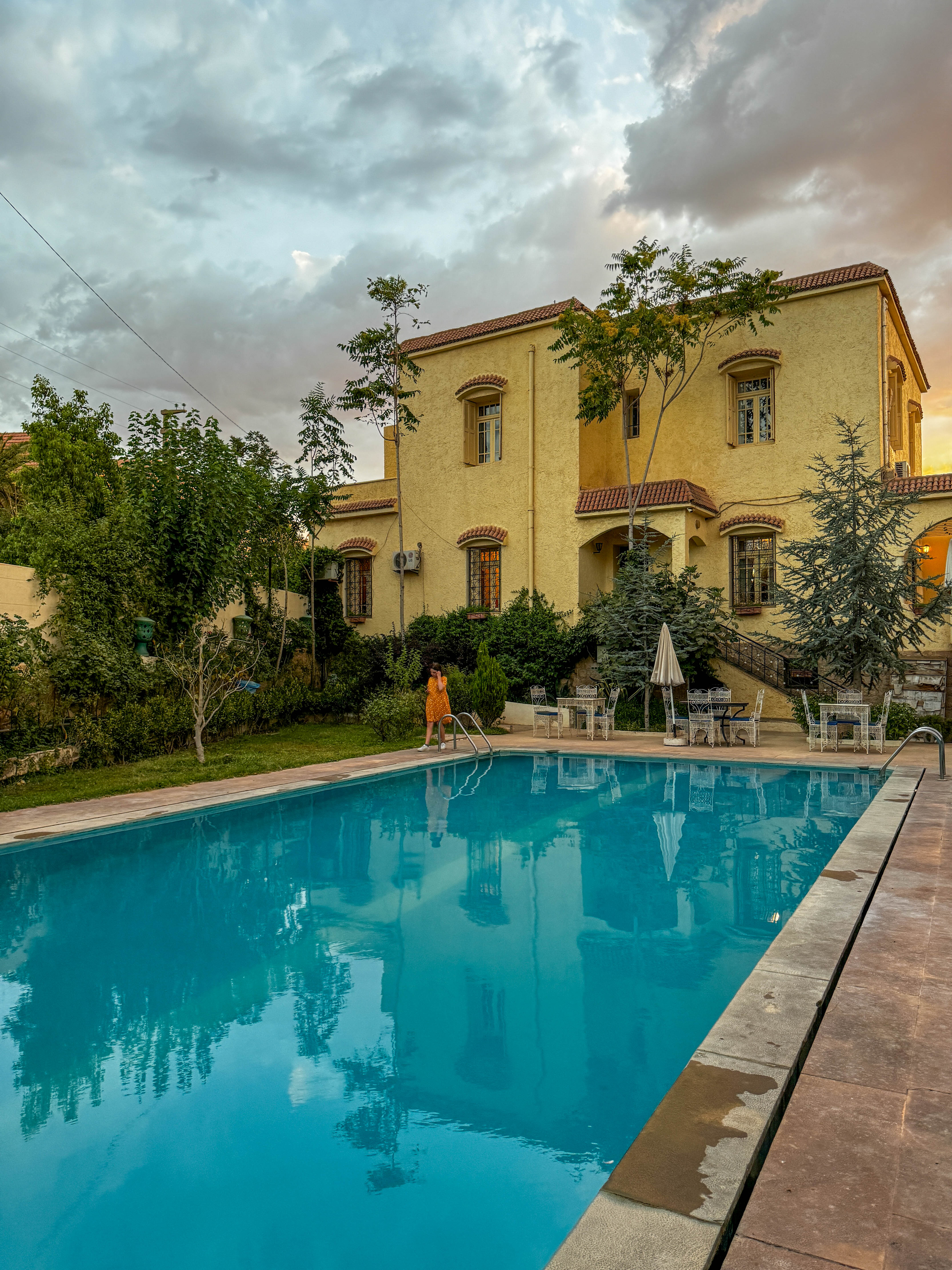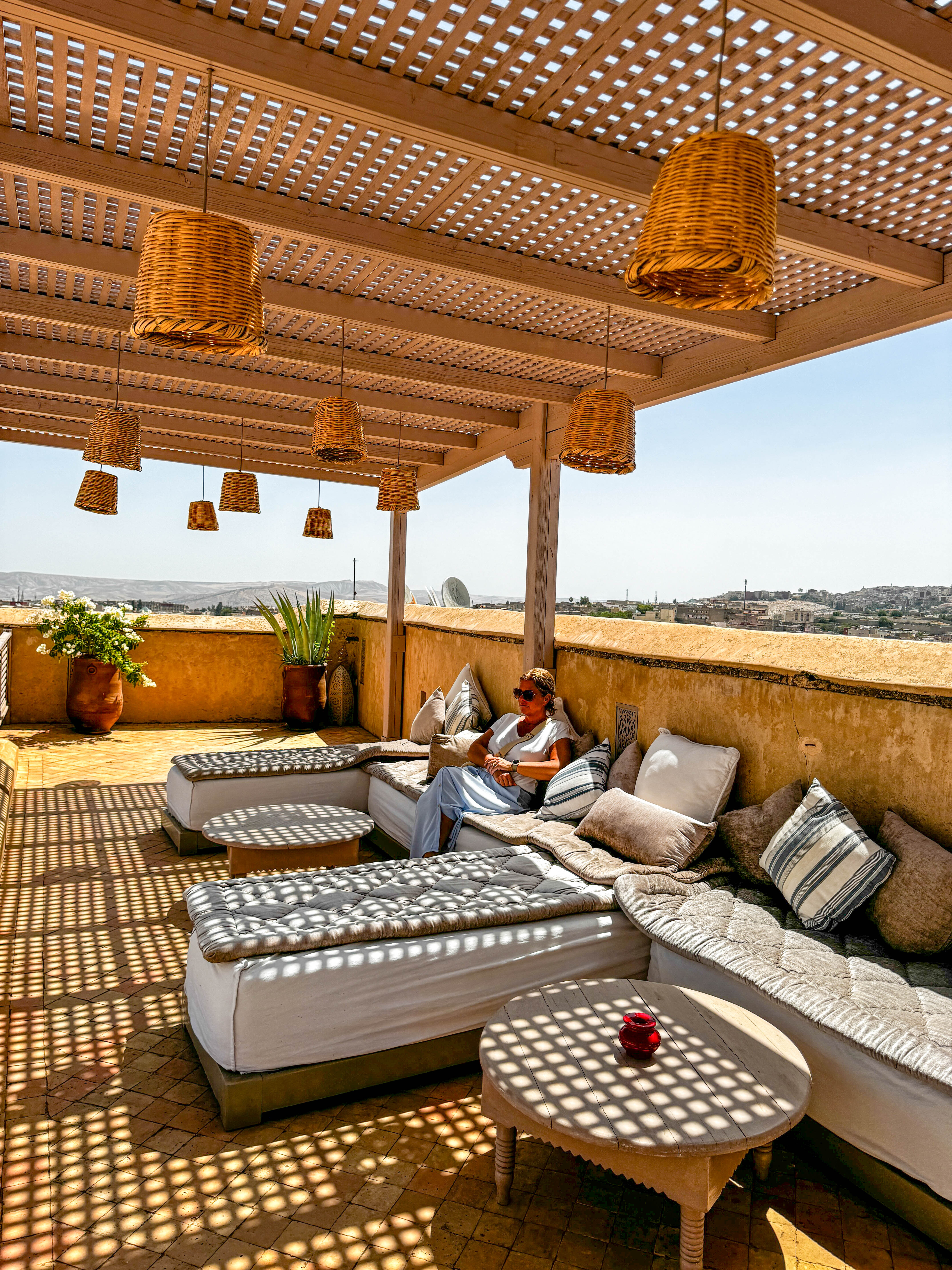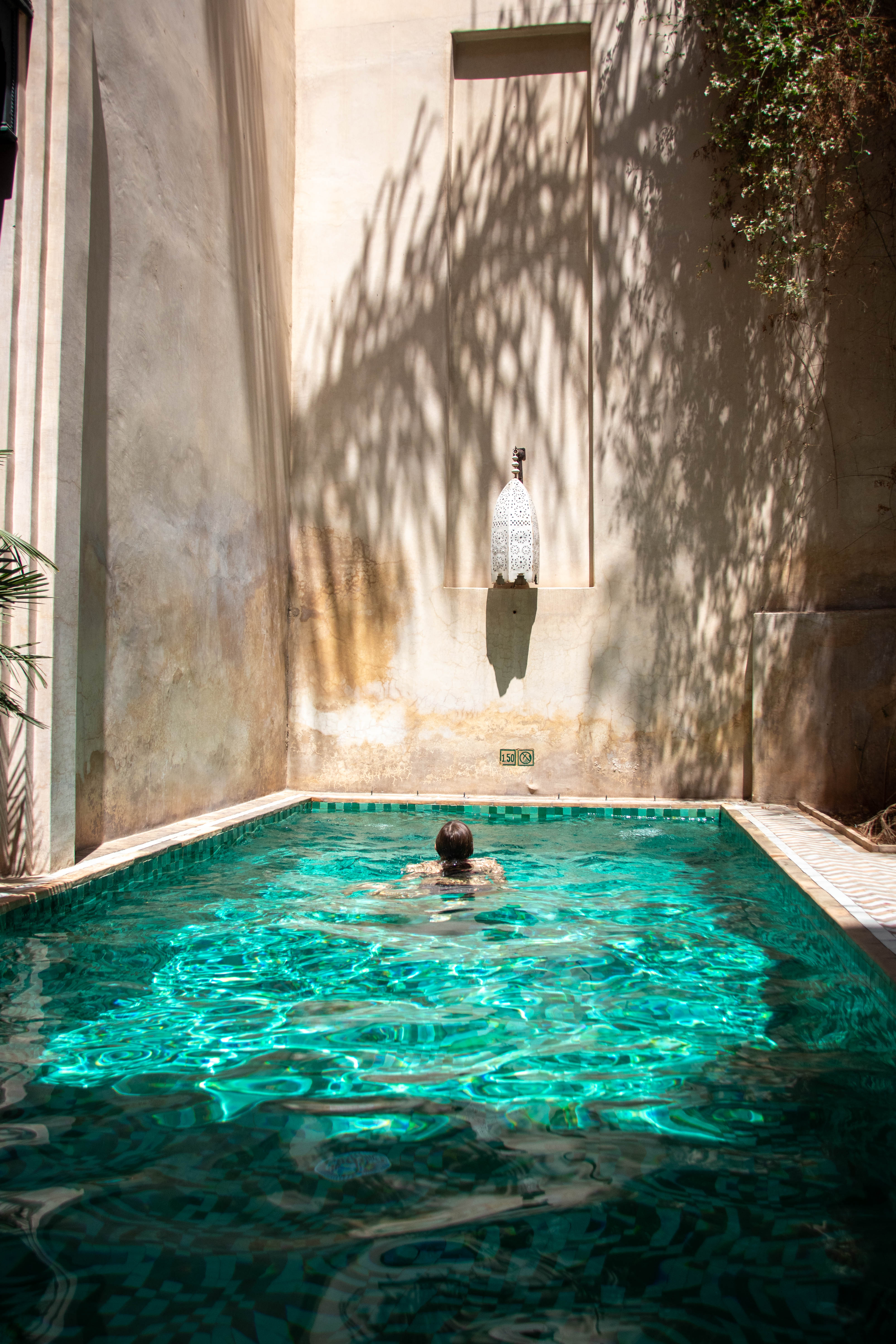 Een paar uur later zaten we al aan het ontbijt. Voordat we aan ons bezoek aan Fez begonnen, doken we nog even in het kleine maar oh zo verfrissende zwembad.
