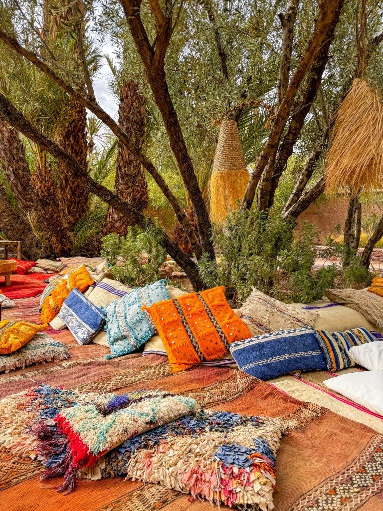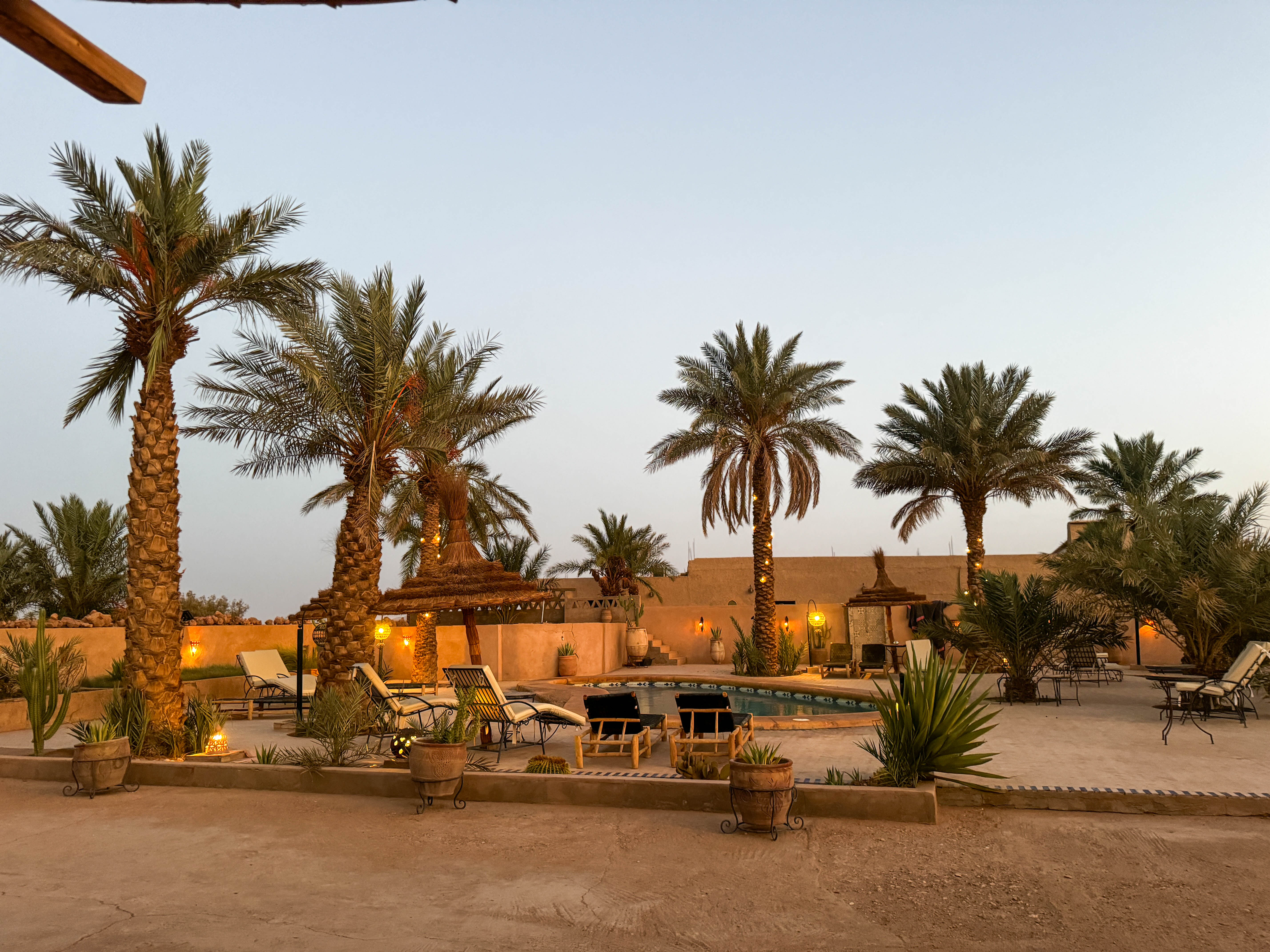Nadien reden we de weg weer af richting Boumalne en zo door naar onze volgende stop, in Skoura. Dat is geen typische bestemming voor een reis in Marokko, maar mijn oog was gevallen op een heerlijk hotel waar we onszelf even wat rust wilden gunnen. En dat bleek een geweldige keuze te zijn. Anderhalve dag lang deden we niets anders dan luieren, zwemmen en lekker eten, en dat in een van de beste hotels waar ik al ooit heb verbleven.