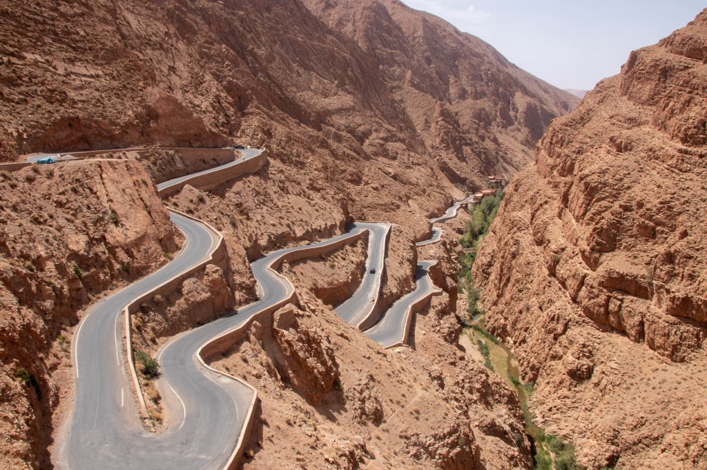 Je kan de Dades vallei niet bezoeken zonder een wandeling te maken. De meest populaire wandeling door de vallei is zo’n 8km lang. Wij wilden daar graag een variatie op en gaven dat zo door aan onze gids. Die had ik de avond voordien pas gecontacteerd, na goede reviews gelezen te hebben op verschillende wandelwebsites. Hij stelde niet teleur en leidde ons een kleine drie uur door de vallei en langs velden en gewassen. Na de wandeling reden we nog wat dieper de Dades vallei in, zodat we de bekende haarspeldbochten konden zien. Het beste zicht heb je vanop het terras van café-restaurant Timzzillite.