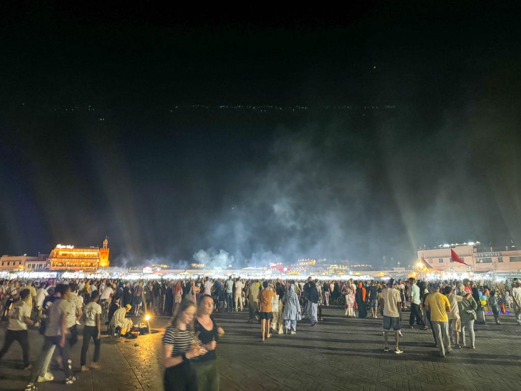 We wilden graag iets kopen aan een van de vele eetstandjes, maar dat raadde de gids ons af. Toeristen die voor de eerste keer in Marokko zijn, beperken zich best tot het eten van wat er aanbeboden wordt in hotels of andere “toeristische” restaurants.